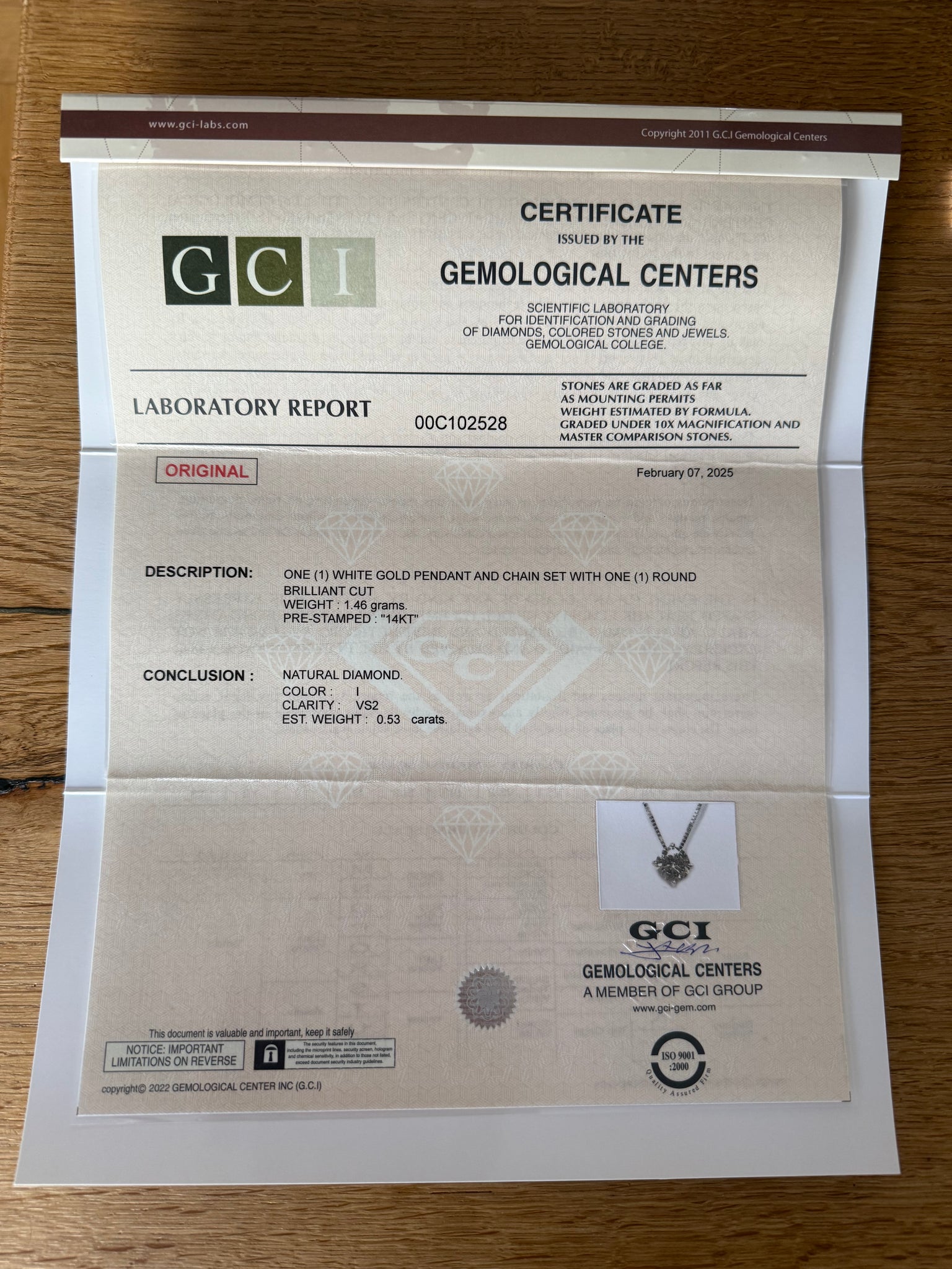 Simplicity, when it is best. A white gold chain and a white diamond weighing 0,53 ct. A stunning piece suitable for all occasions.
