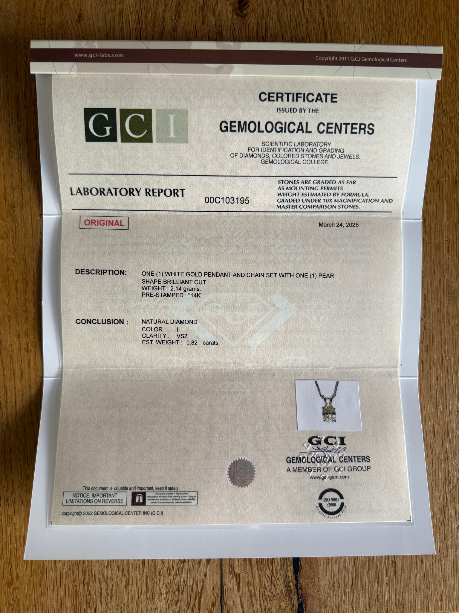 Chain material: 14 ct. white gold