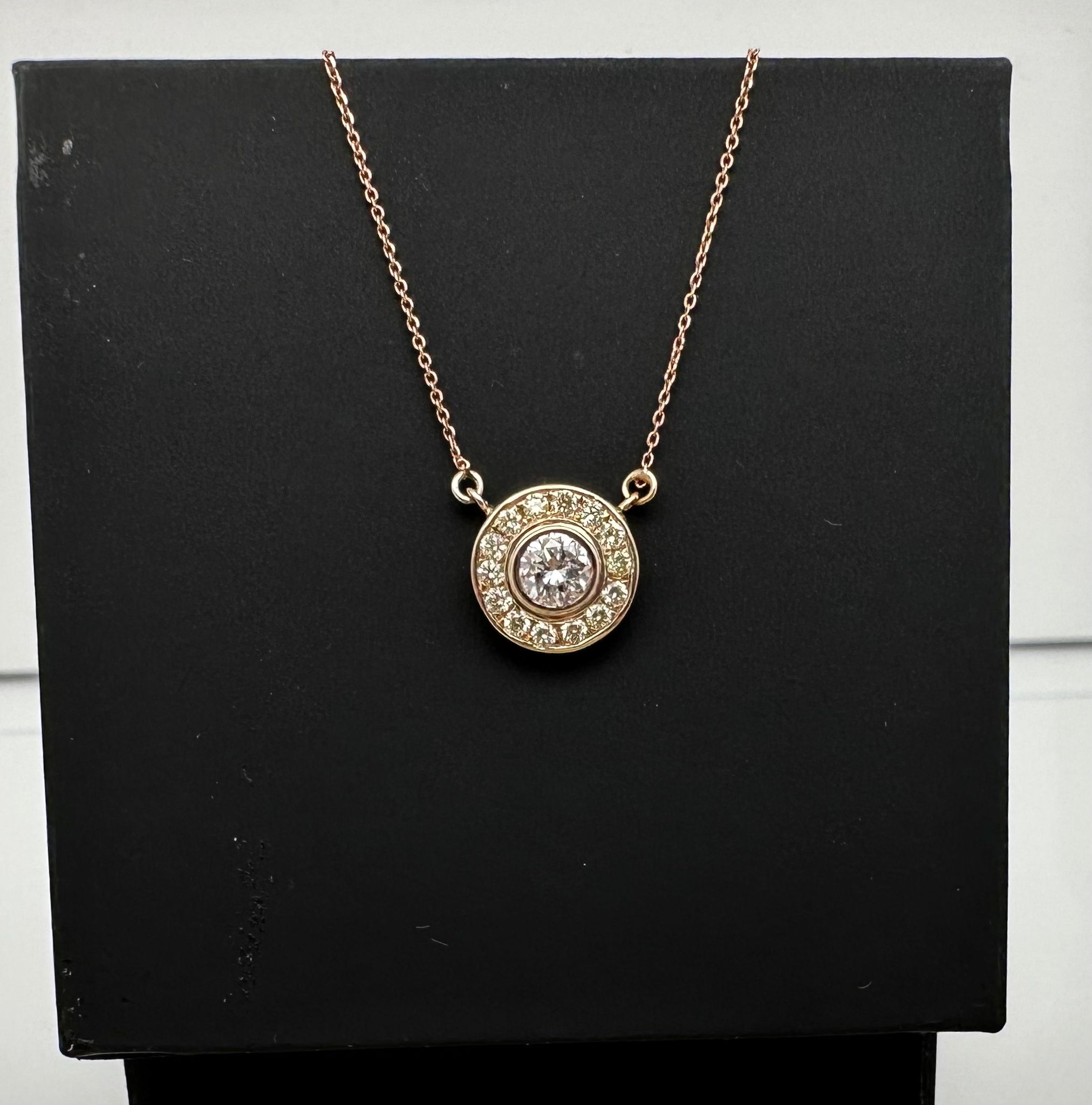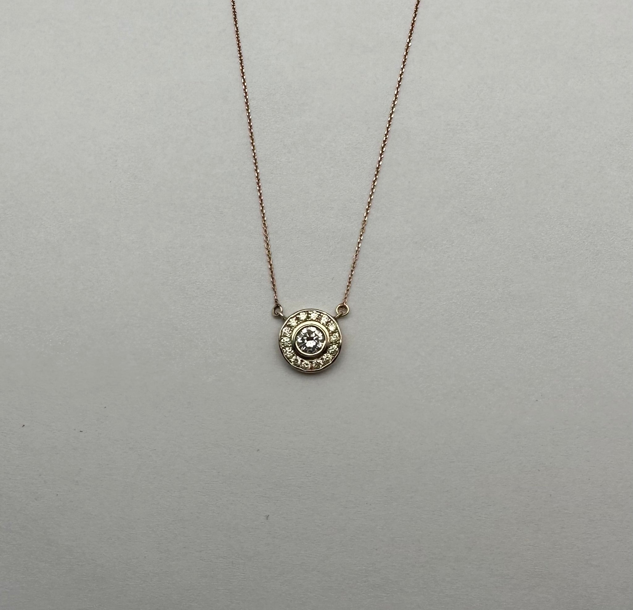 A chain of great handcraft in 18 ct. rose gold in a solid design that makes the diamonds seem bigger. You get sparkle from the diamonds and a historical look from the 18 ct. rose gold.