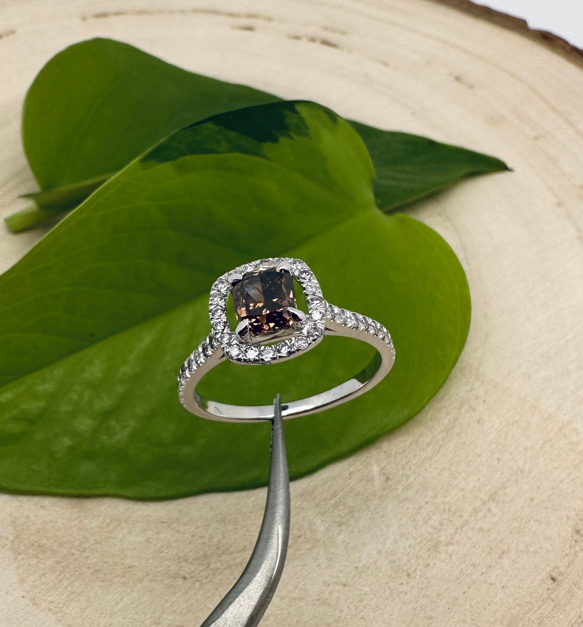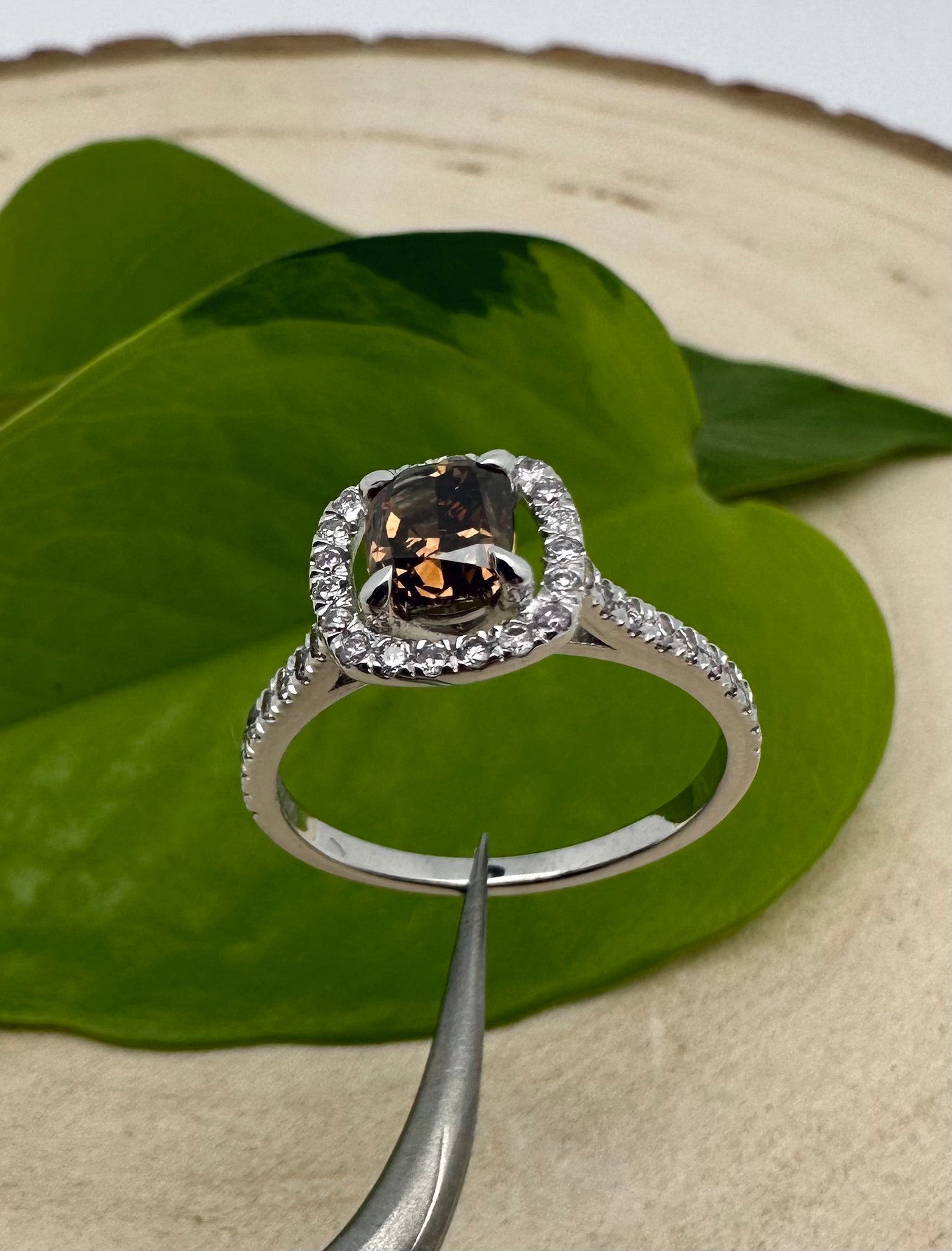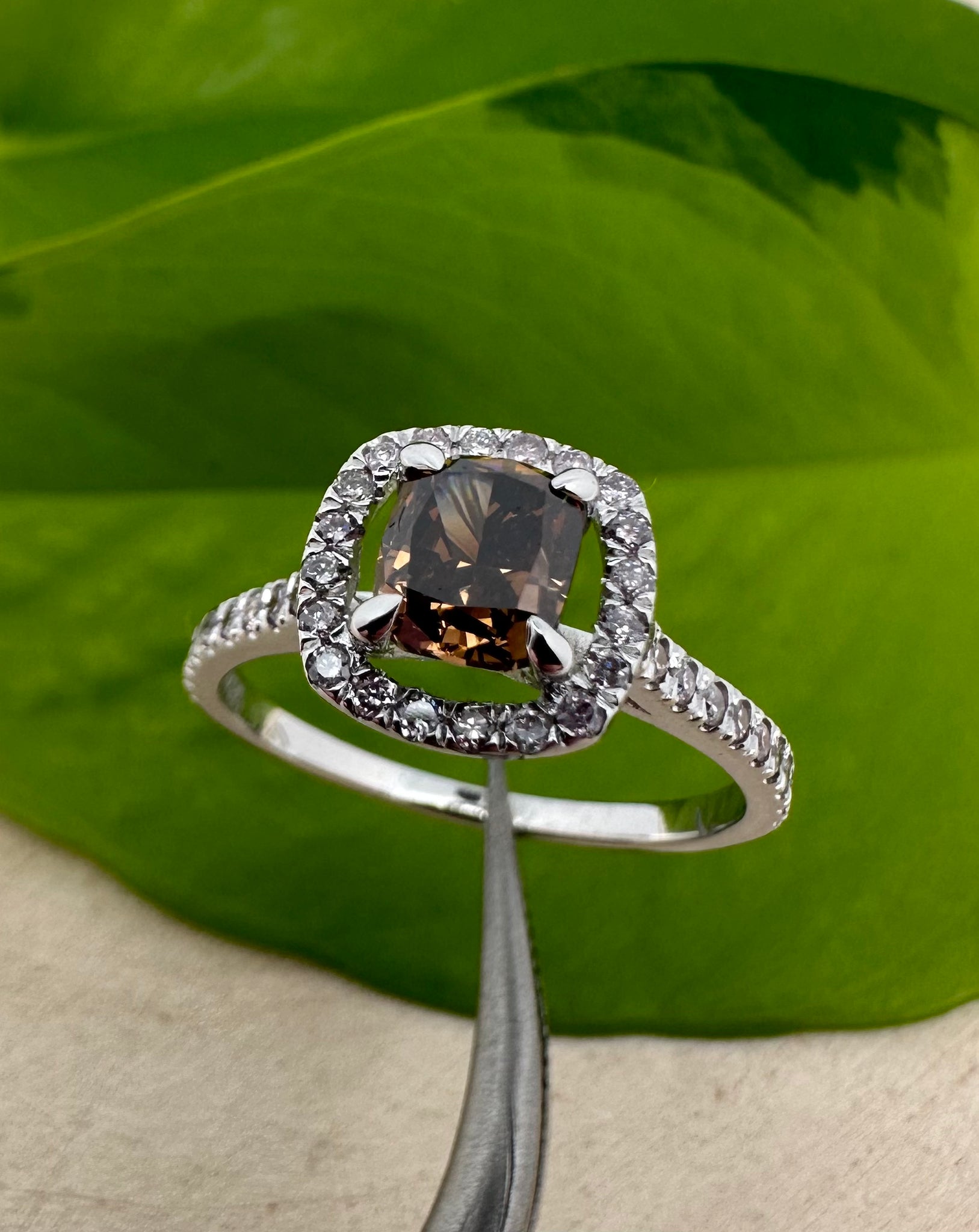 Colour of center stone: Natural Fancy Orangy Brown