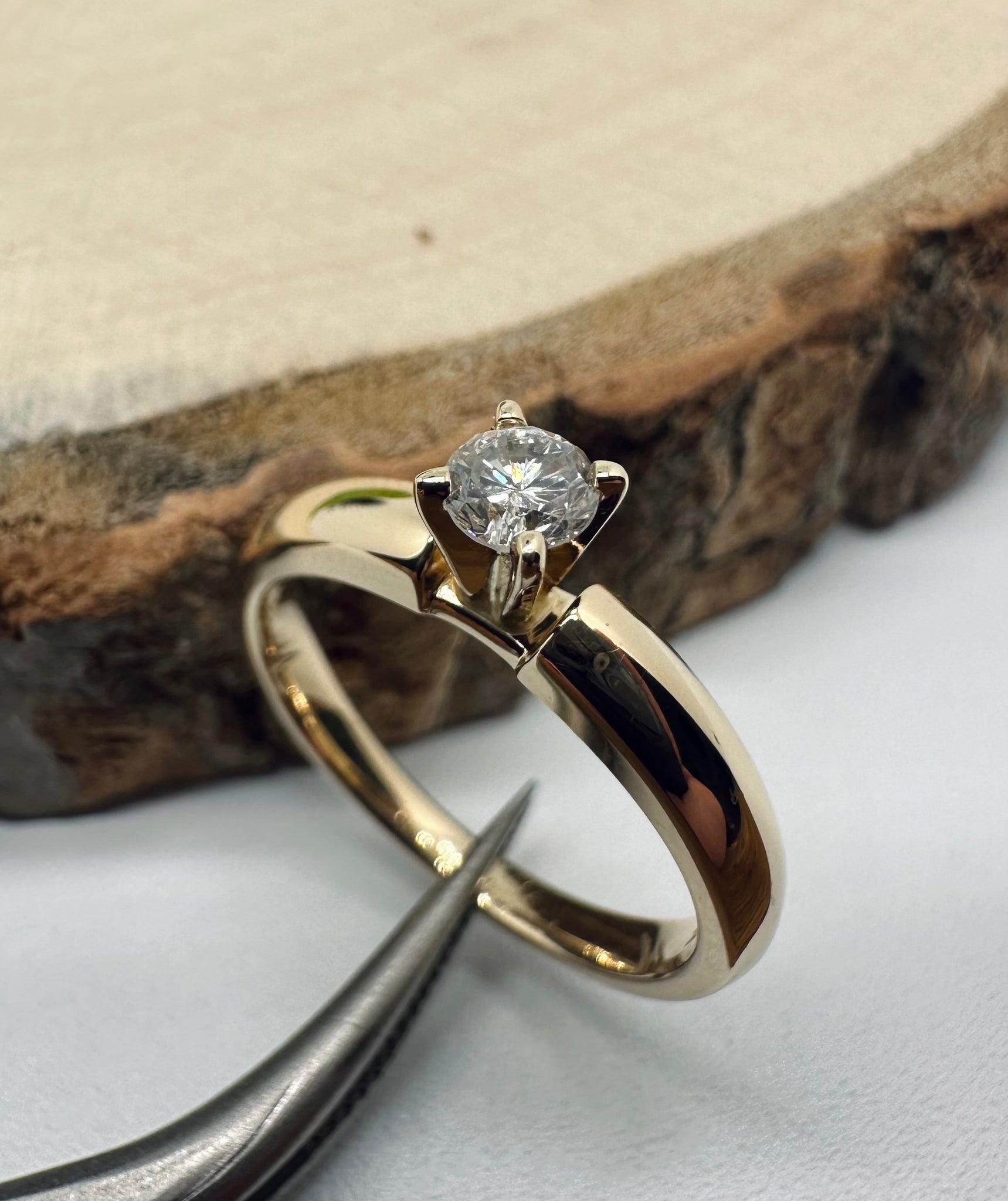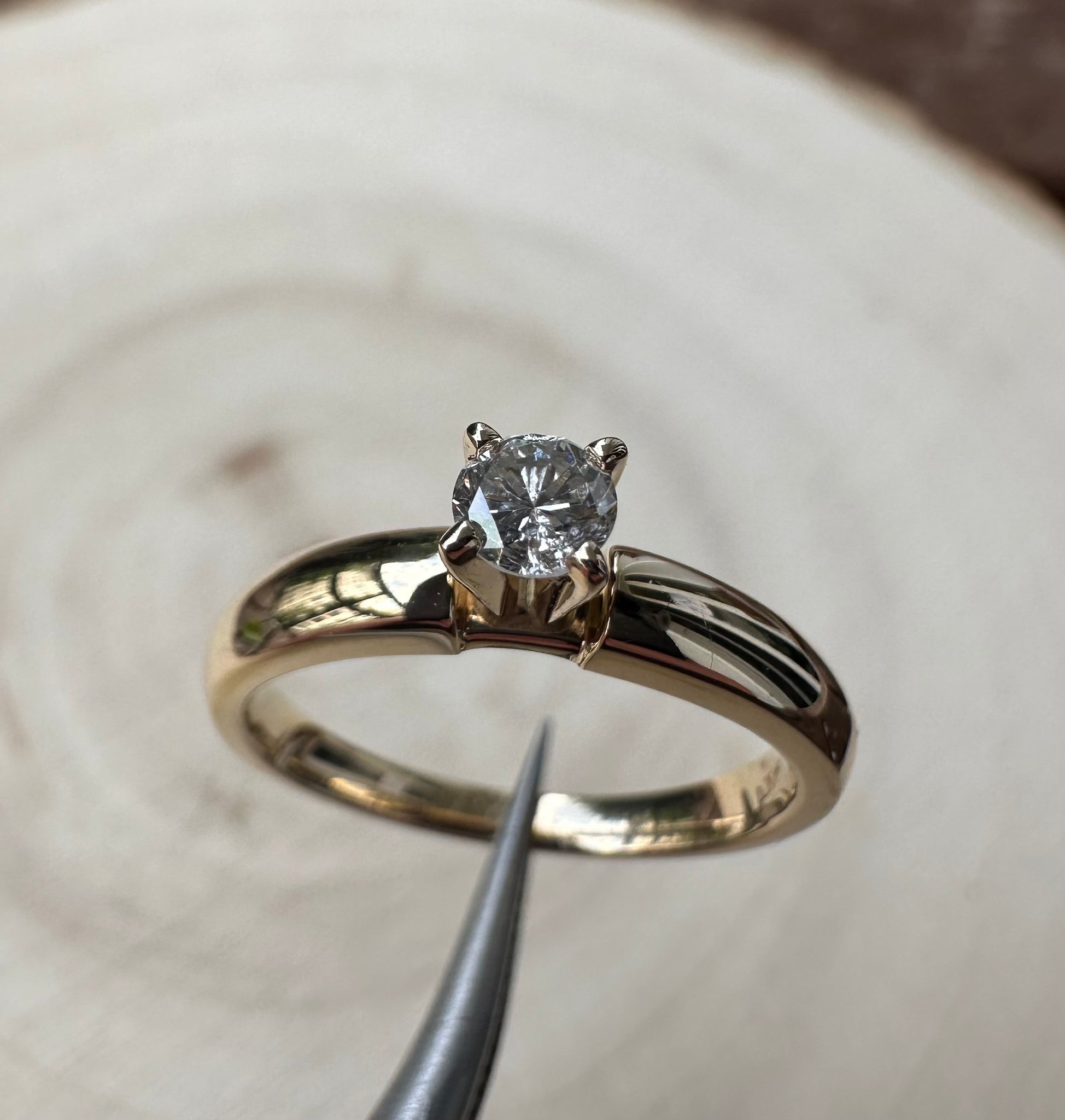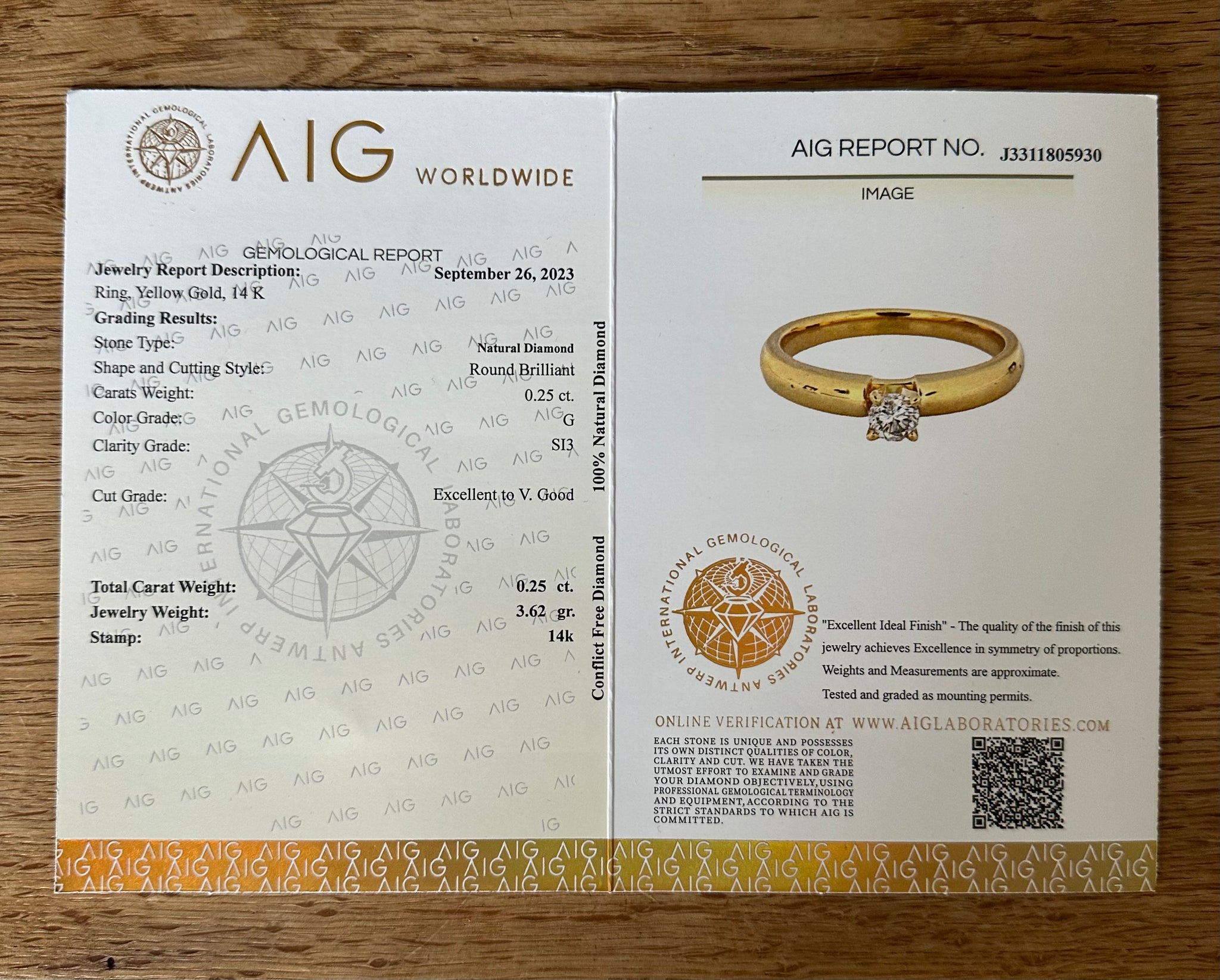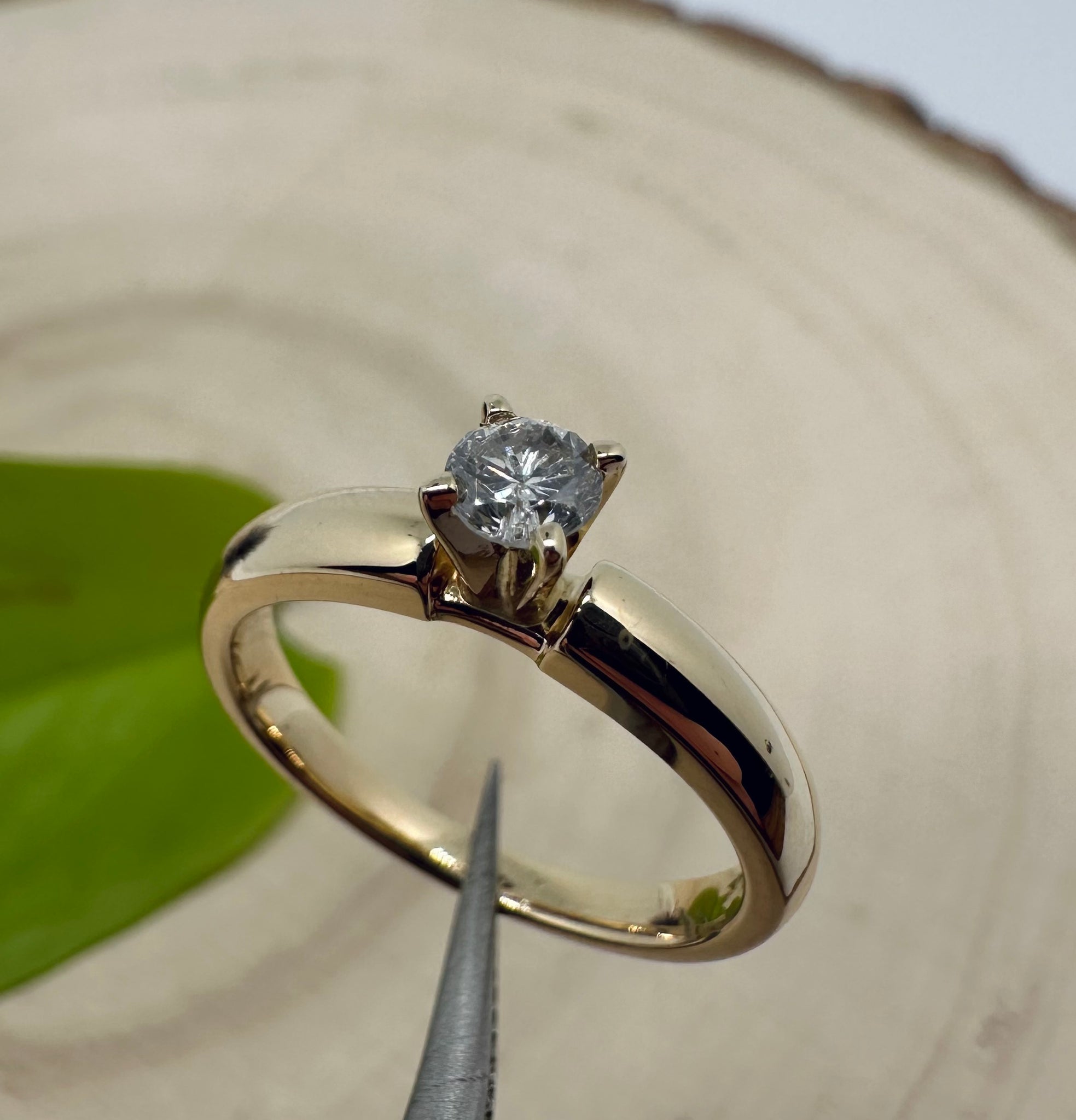 A classic solitaire diamond ring in 14 ct. yellow gold with a 0,25 ct. diamond. It is simplicity, when it is best! Stylish, classic and always modern.
