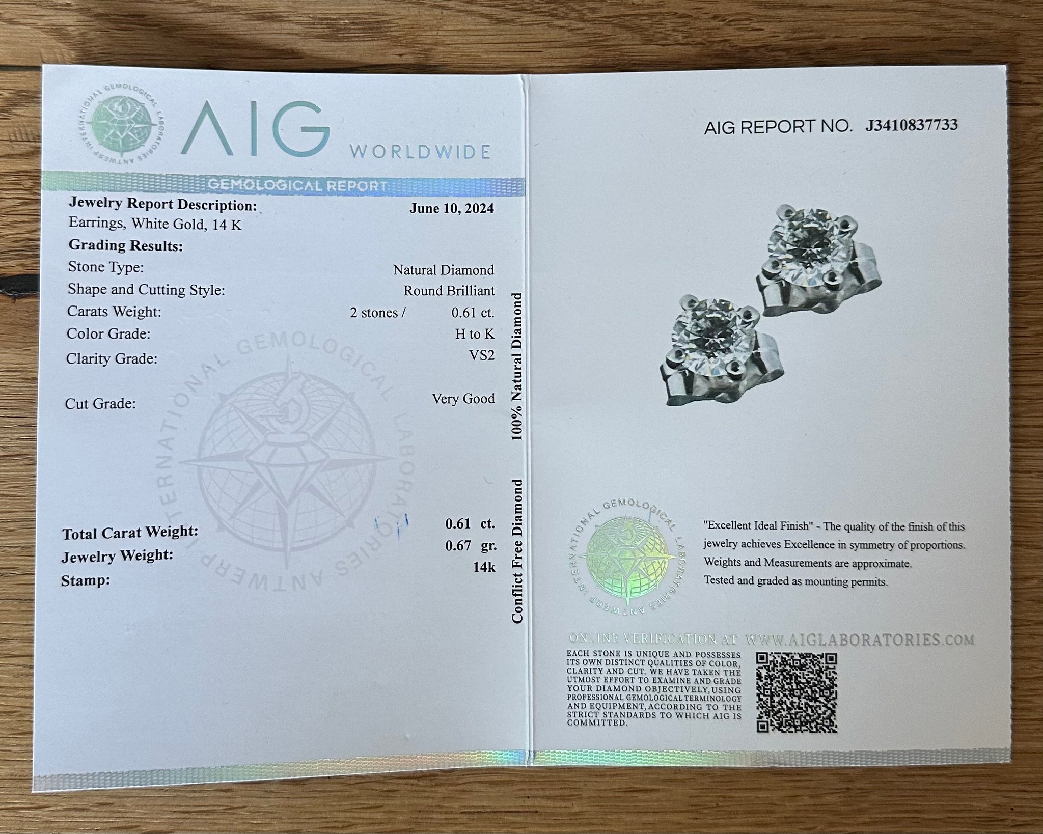 Jewellery box and AIG-certificate are included.
