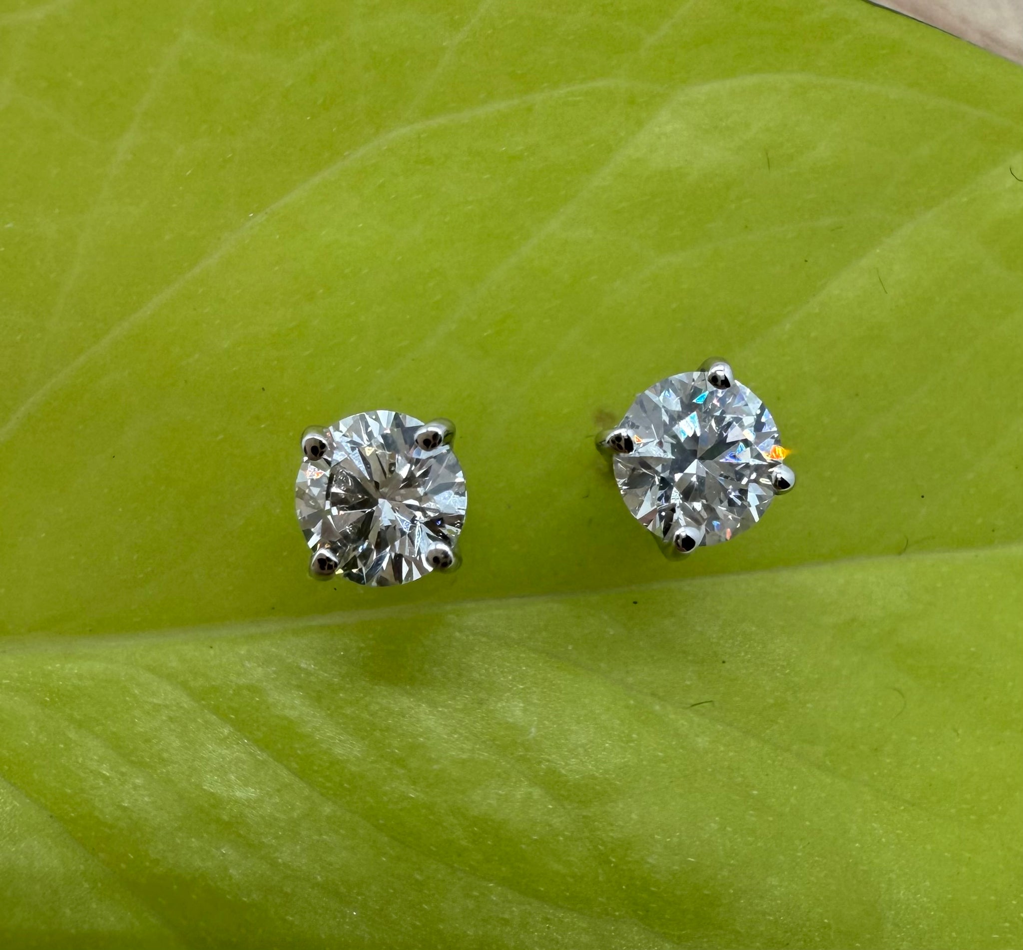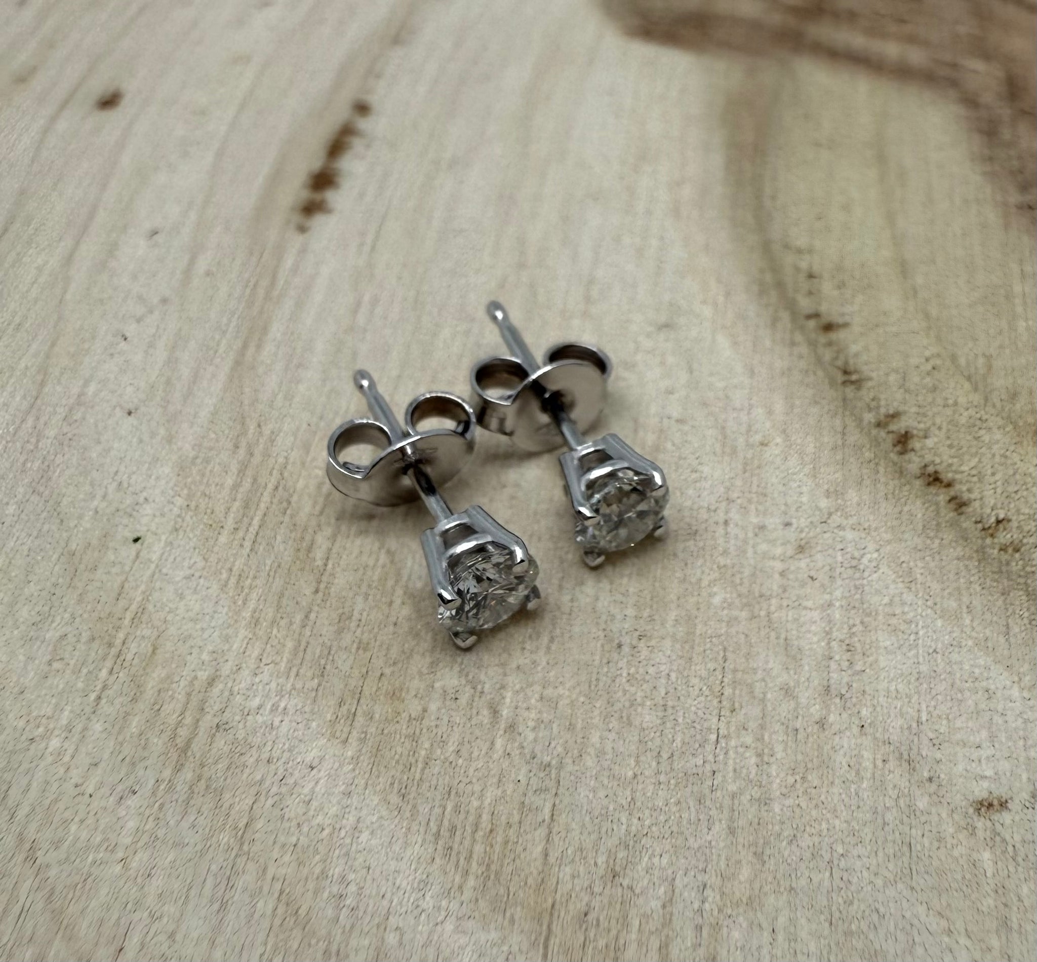 A set of two beautiful stud earrings in 14 ct. white gold with a total of 0,50 ct. natural diamonds. These earrings are the epitome of grace and sophistication. Really simple but still with a lot of sparkle.