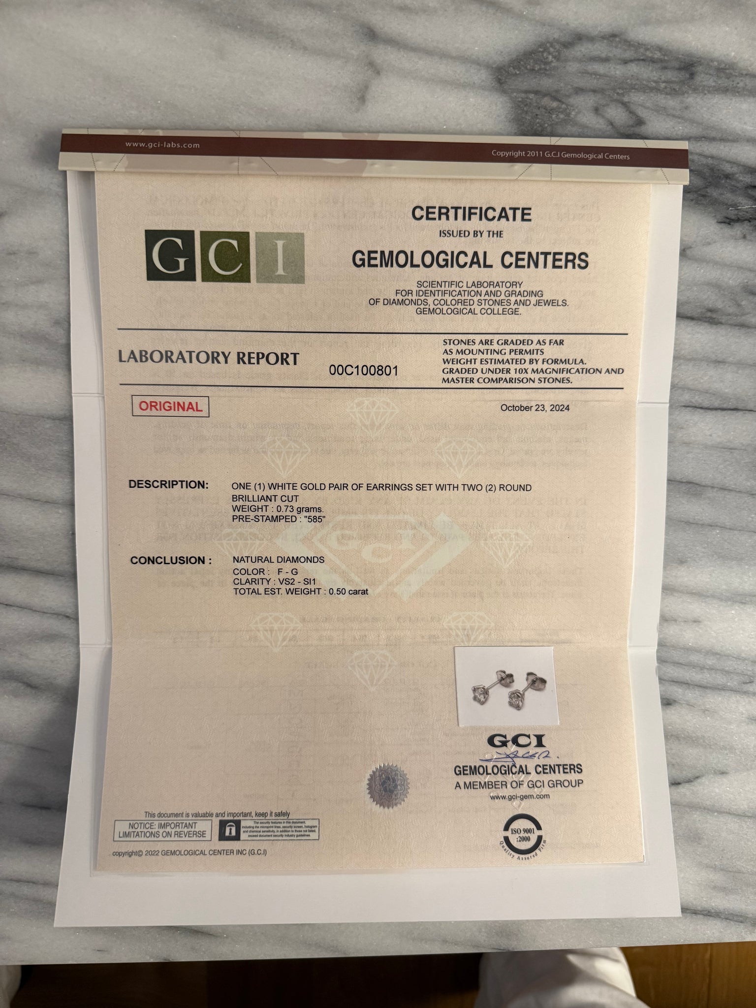 Colour of diamonds: F - G (Colorless - Near Colorless)