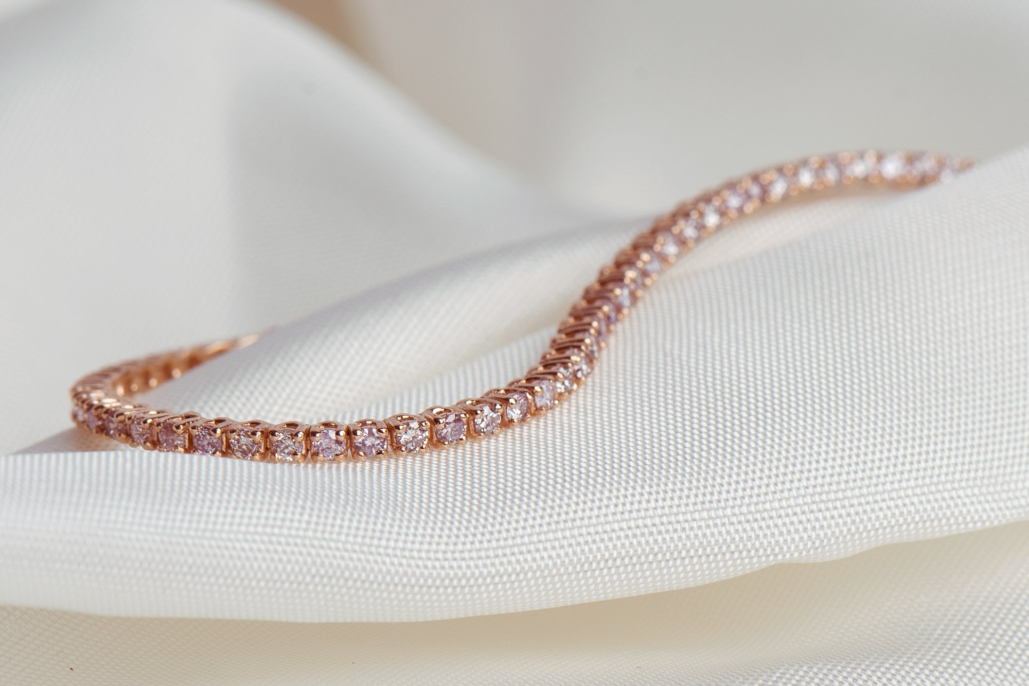 This masterpiece is a stunning rose gold necklace set with 166 natural pink diamonds. Definitely not an everyday piece of jewelry! It is characterized by its extremely delicate, elegant, but at the same time very impressive design. With the multitude of diamonds a must-have for all lovers of beautiful, real gemstones. The chain can also be worn as a double bracelet.