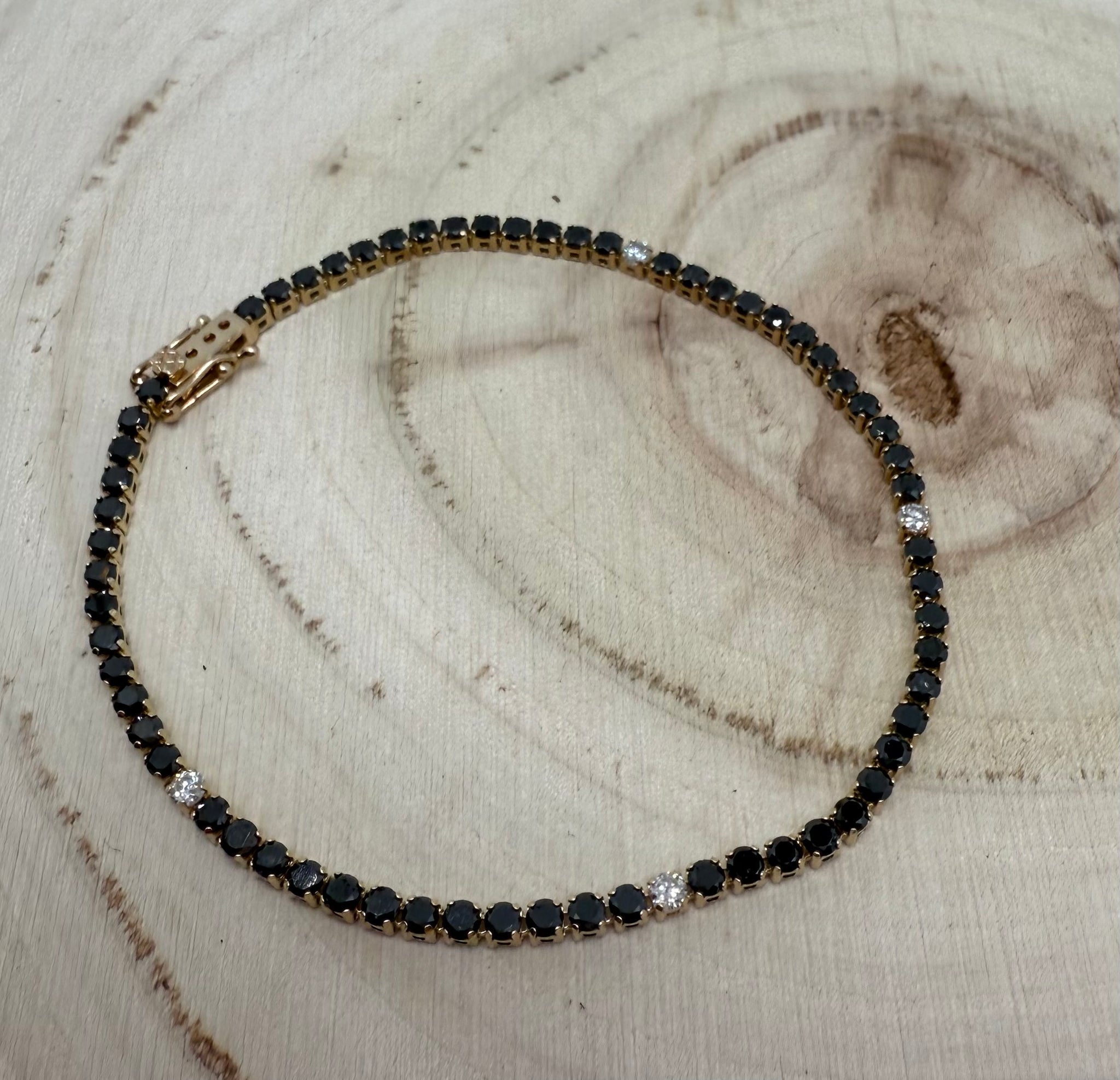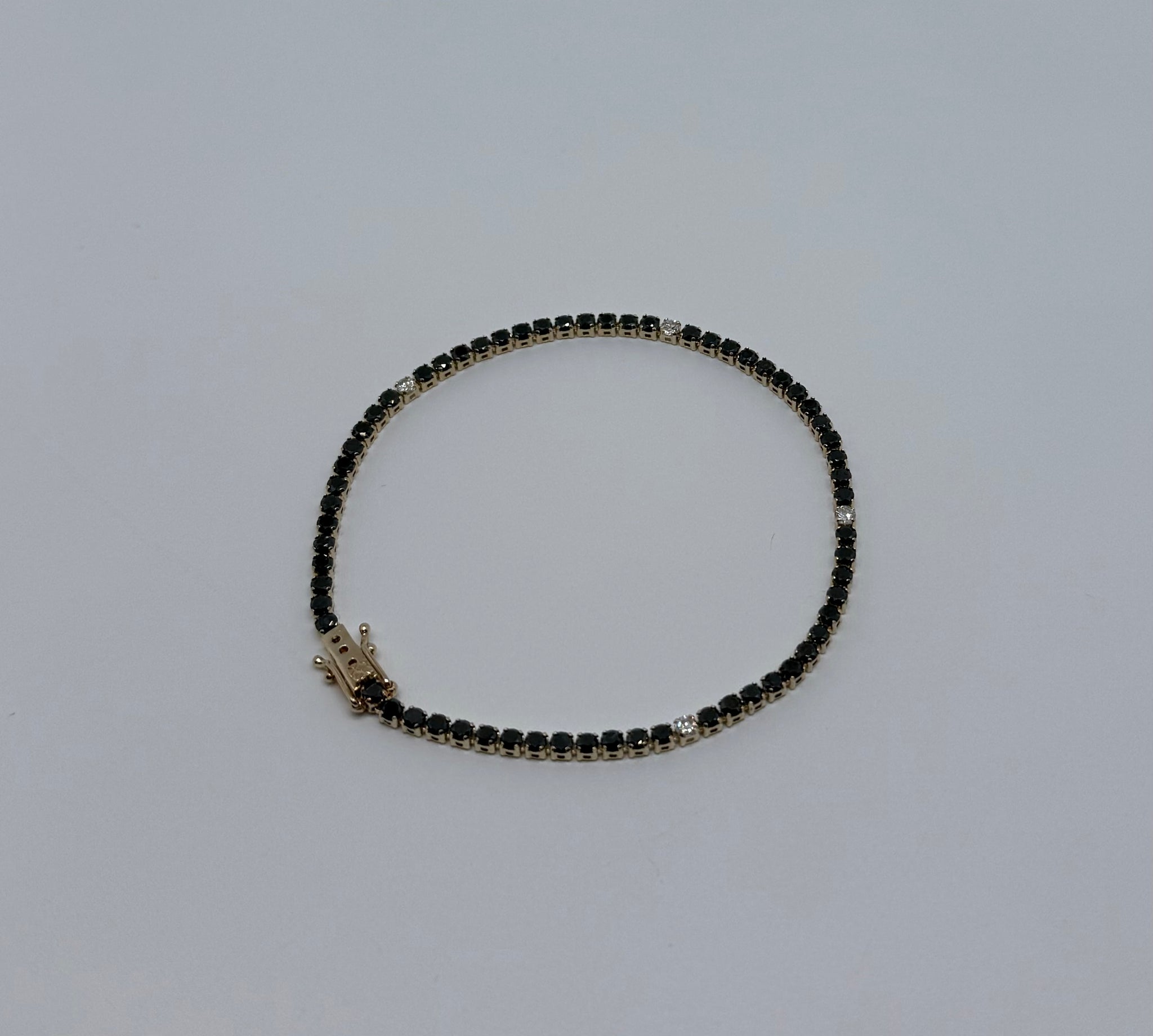 Discover the allure of our 14-carat gold tennis bracelet, designed to captivate.