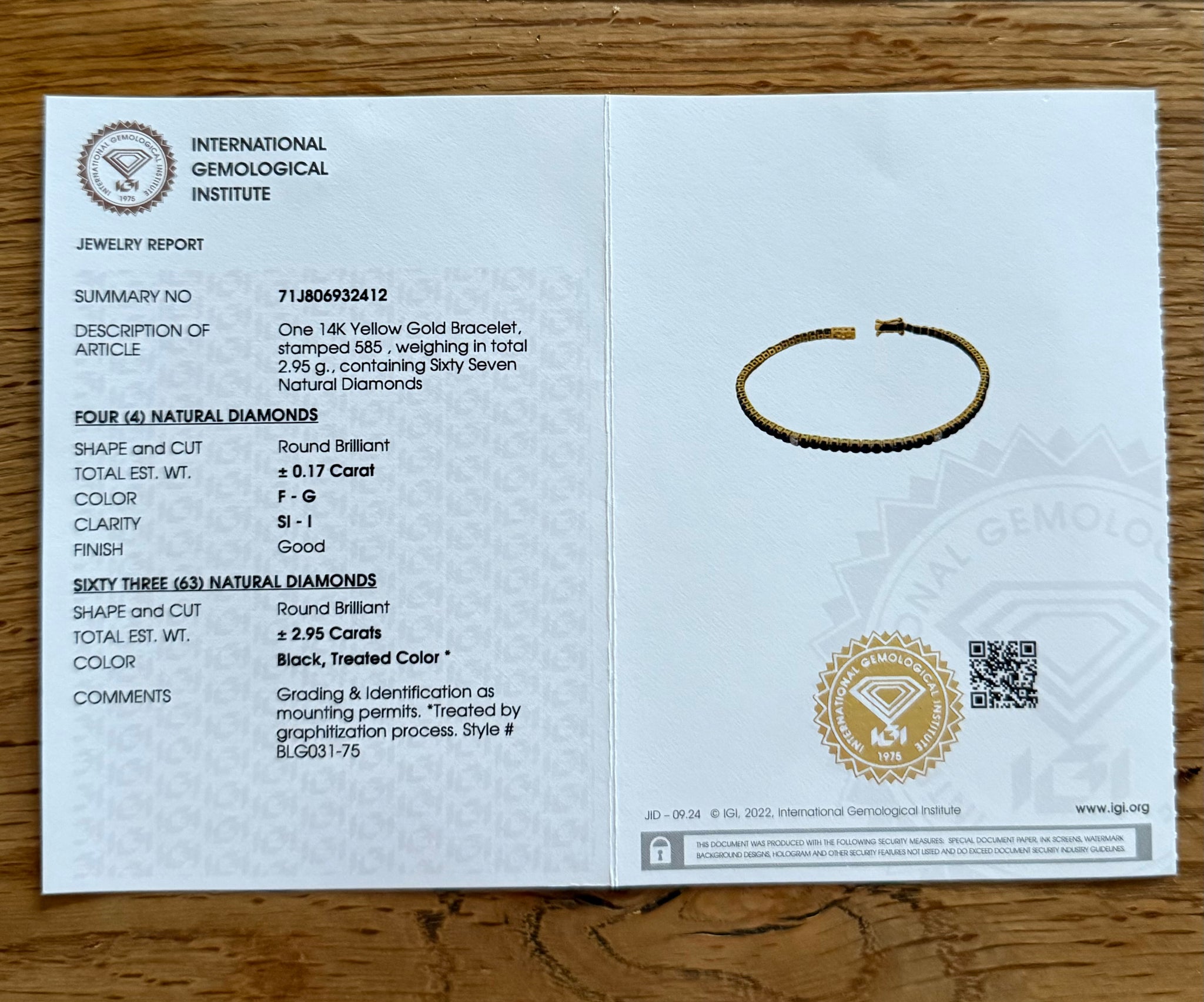 Adorned with 63 black (color treated) diamonds and 4 colorless diamonds, totaling 3,12 carats.